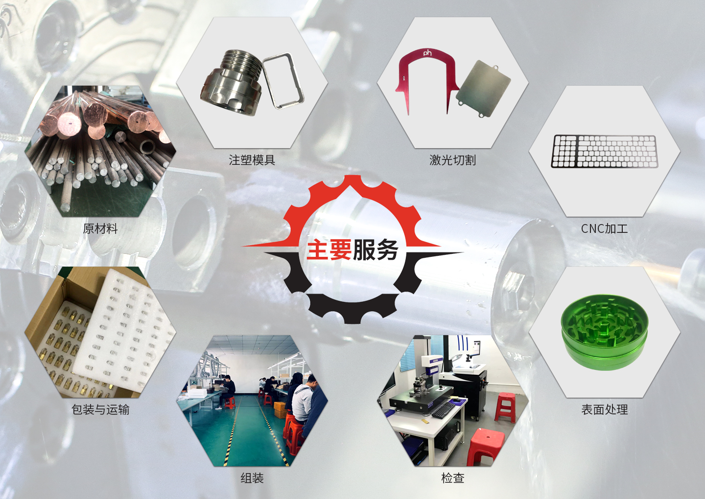 公司自有设备CNC数控车床、CNC加工中心, CNC车铣复合加工中心等生产设备,另外还配备了全自动影像仪,轮廓仪,二次元,三丰高度仪等一系列高规格的精密检测仪器,致力于为工业领域客户制造加工航空, 汽车,医疗,通信等精密五金零件组件并提供一站式服务,服务包含从原材料,模具,机加工,表面处理,质检组装,打包出货的全覆盖。对不锈铁,不锈钢,铝合金,红铜,黄铜,POM,PEEK,亚克力和树脂材料等具备丰富的处理经验。
